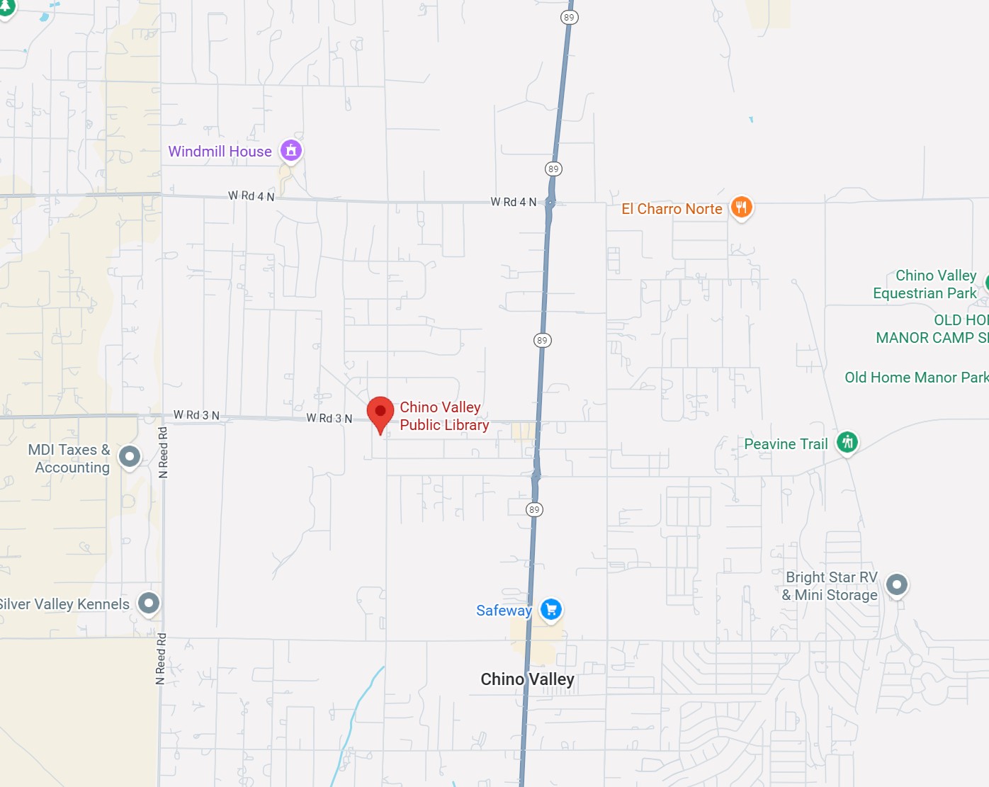 Two Locations Prescott: Pine Ridge Marketplace Suite 128 near Dillards. Chino Valley: Chino Valley Library 1020 W Palomino Rd, Chino Valley, AZ 86323